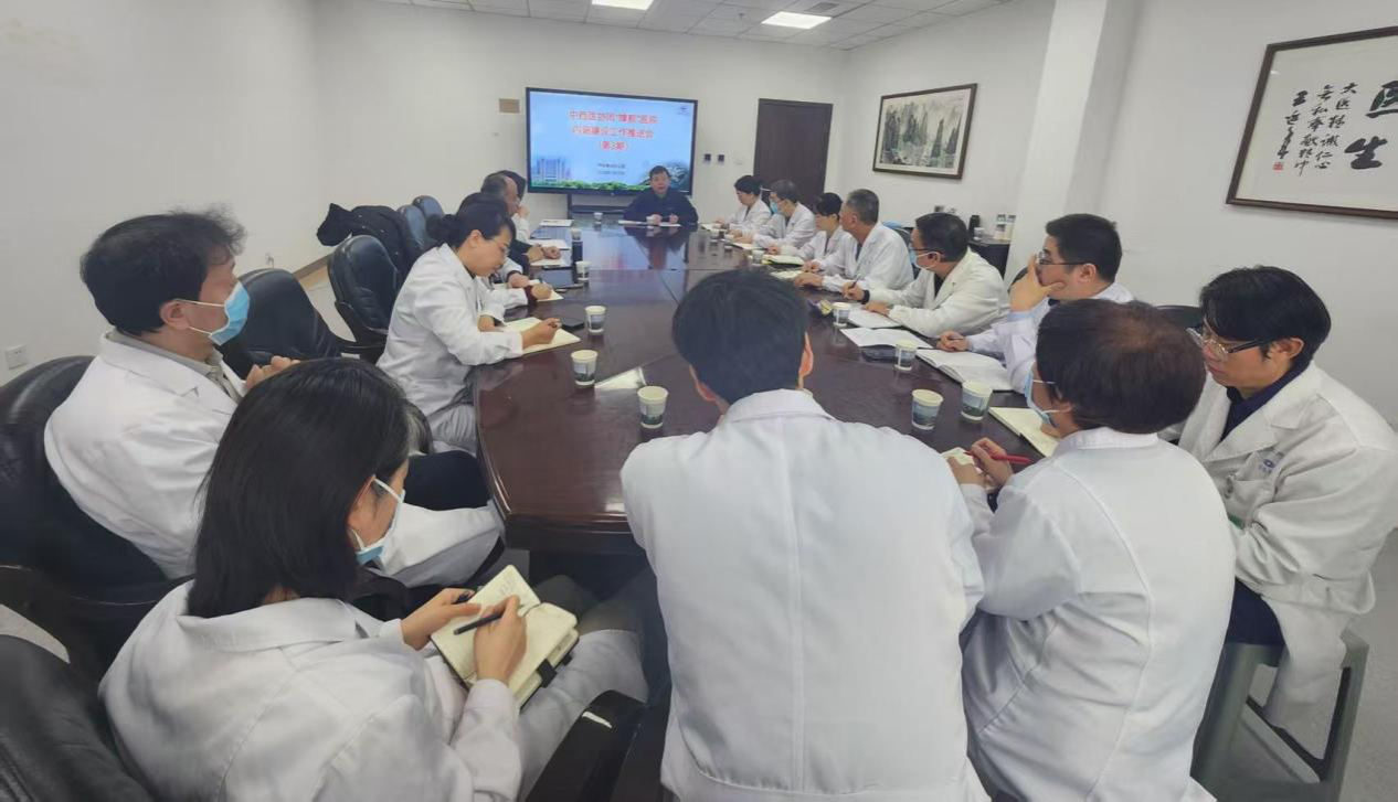 会上,田应选主任通报了相关文件内容,提出了中西医协同“旗舰”医院示范病房中医药文化氛围建设和中西医协同特色学科宣传的初步方案,强调了“旗舰”医院各临床科室要加快重点病种、诊疗方案和中西医结合门诊建设,推进临床科室与中医科、针灸科的协同发展机制。针对中西协同示范病房建设工作,广泛征求了参与学科带头人的意见,对文化展示的内容、建设风格和标准进行了讨论。