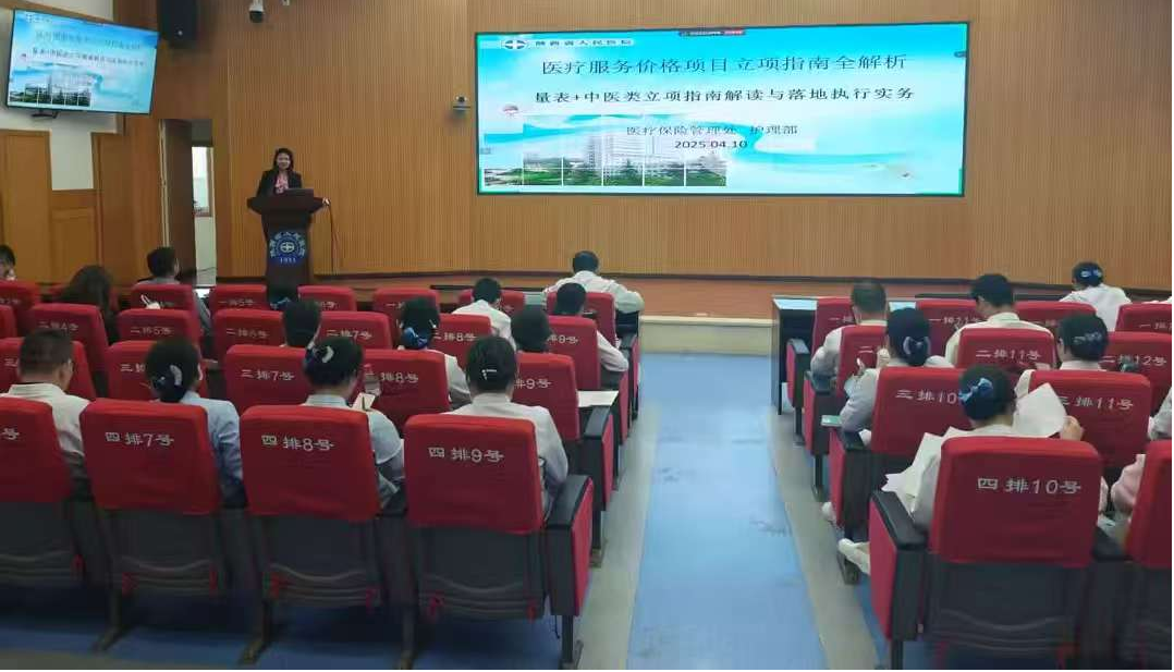 为保障临床评估量表和中医类《医疗服务价格项目立项指南》相关政策在六合彩网站精准落地执行,4月10日下午,医保管理处联合护理部组织开展临床医技科室专题培训,为临床工作提供清晰指引。中医科、针灸科、康复医学科、心身医学科等重点科室临床医生,两院区各科室护士长以及价格员等100余人参加。