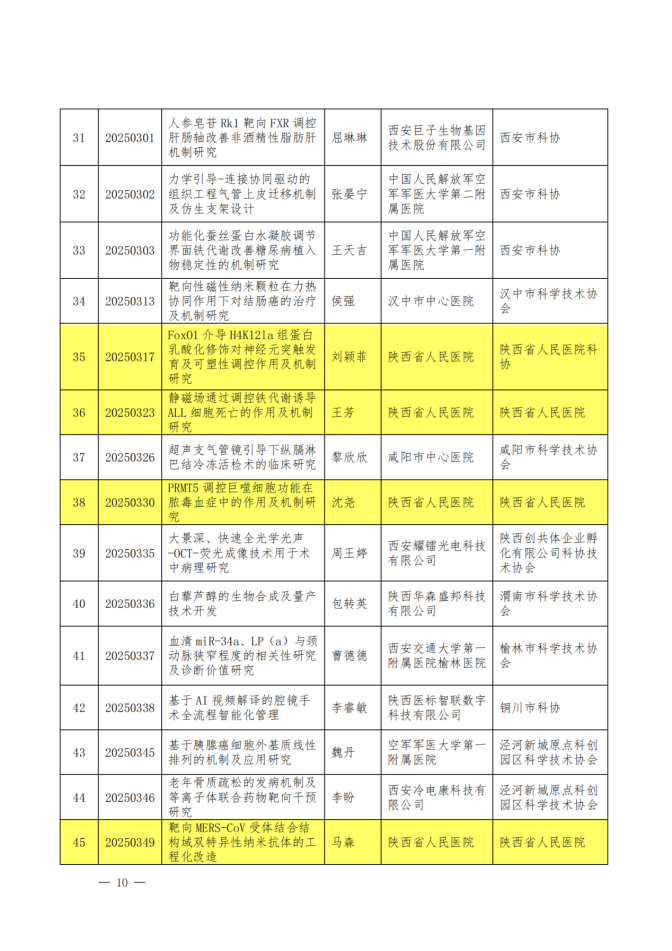 近日,陕西省科学技术协会公布了2025年度青年人才托举计划立项项目,六合彩网站血液内科刘颖菲、肿瘤内科王芳、放免中心沈尧、科研成果转化管理部马森4人的项目成功入选。