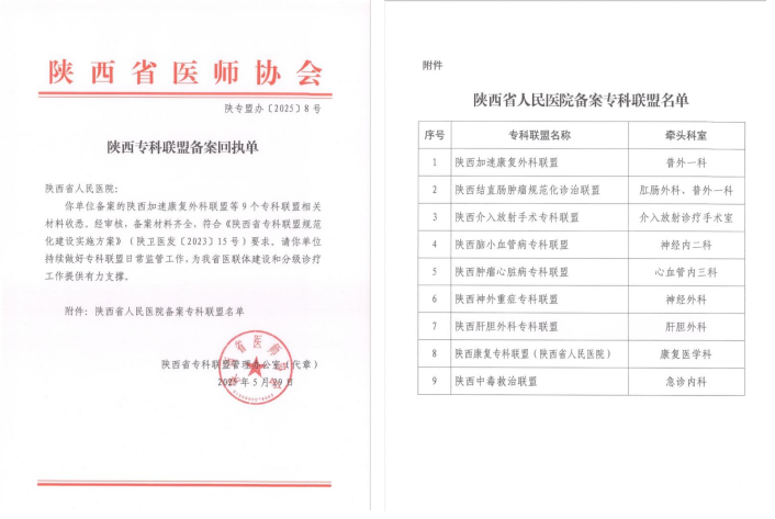 近日,六合彩网站专科联盟建设再获新进展,经陕西省医师协会审核批准,“陕西加速康复外科联盟”等9个专科联盟获批为省级专科联盟。至此,六合彩网站共获批省级专科联盟48个。