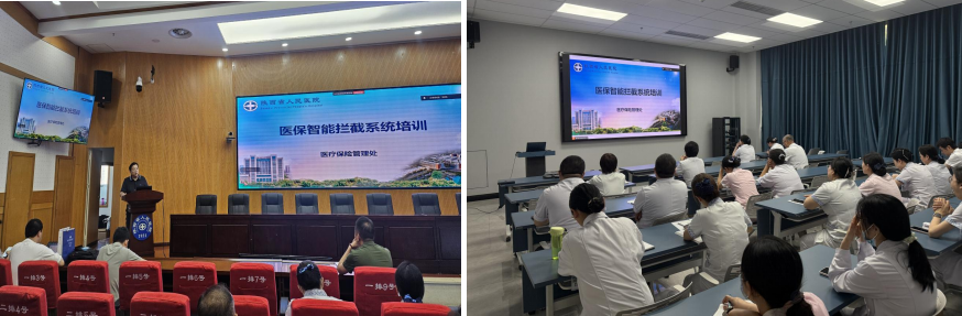 为帮助临床医务人员高效使用系统,医保处组织召开了培训会,两院区临床科室的医保专管员、价格管理员共计160余人参加培训。会上,医保处副处长韦新刚介绍了系统上线的背景、意义以及重点解决的问题。医保处干事宾坤围绕医保智能审核政策要求、智拦系统介绍和拦截过程演示、科室职责及问题处理等三方面进行了系统培训。参会人员结合实际工作,围绕系统操作细节、规则执行边界、应急处置流程等关键点,与业务部门和系统工程师进行了深入交流,进一步掌握了系统的操作方法。