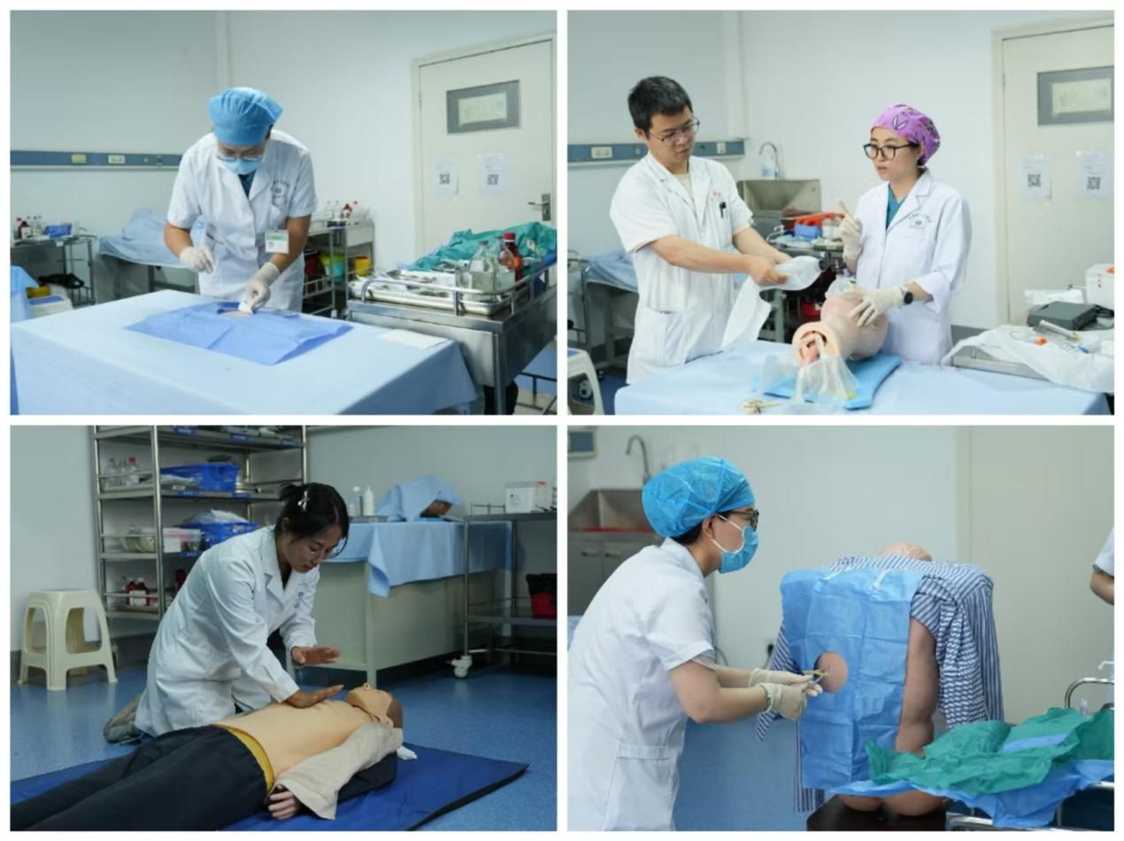 此次比赛共分为综合组、内科组、外科组三个组别,分别考察心肺复苏+电除颤、气管插管术、胸腔穿刺术、腹腔穿刺术、脓肿切开术、清创术等操作技能。医院多位内外科专家担任评委,采用“操作授课+教案设计”双轨评分机制为参赛选手赋分。来自32个临床科室的35名(西咸4名)选手参赛,10位优秀指导老师在比赛中胜出。