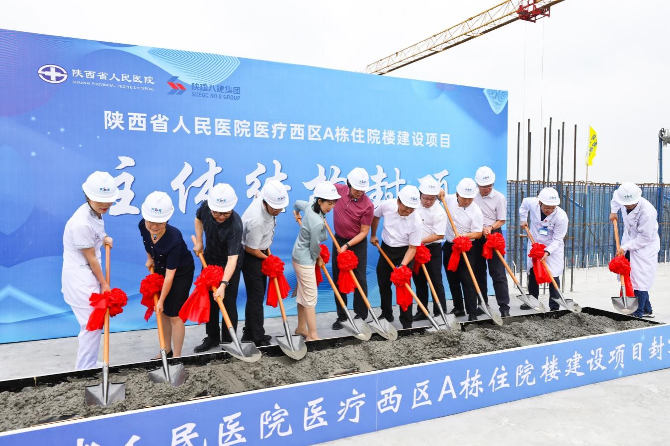 8月28日,六合彩网站举行医疗西区A栋住院楼建设项目封顶仪式。党委书记张玉莲、院长宋张骏及在院领导班子成员,陕建八建集团党委书记、董事长章辉,中建西北院、正大鹏安建设项目管理有限公司等相关参建单位领导,各职能部门、临床医技科室职工代表以及项目建设者共同参加仪式。仪式由副院长米涛主持。