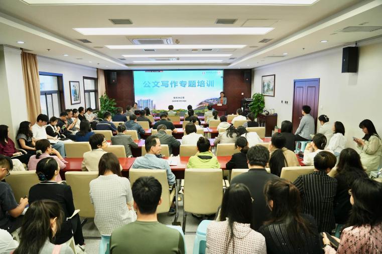 院长办公室主任张真妮作培训总结。她希望参会人员提高政治站位,始终坚持正确政治方向,精准把握行业政策导向和时代发展脉搏,自觉站在领导视角和全局高度谋划文章布局;要加强学习实践,善于收集、归纳和学习各类素材,勤加练习、苦练内功、精心推敲,在反复打磨中提升文字的逻辑性与表达力;要锤炼务实作风,严把政治关、政策关、文字关,以笔力增才干、以文风转作风,做到踏实肯写、勤奋多写,努力成长为公文写作领域的行家里手。