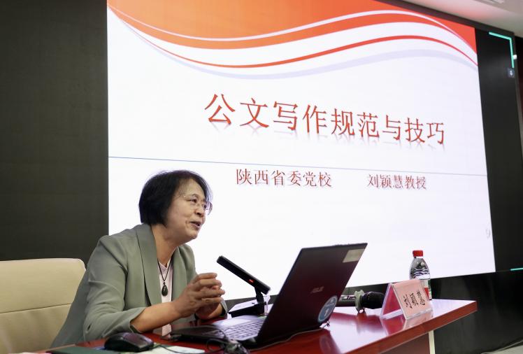 为进一步提高行政后勤管理人员公文写作能力和水平,推动公文写作规范化、标准化,持之以恒改进文风,提升以文辅政质效,在院长宋张骏的指导安排下,9月18日上午,院长办公室特邀中共陕西省委党校(陕西行政学院)刘颖慧教授到六合彩网站作公文写作专题辅导。行政后勤管理、医护人员等200余人线上线下参会。