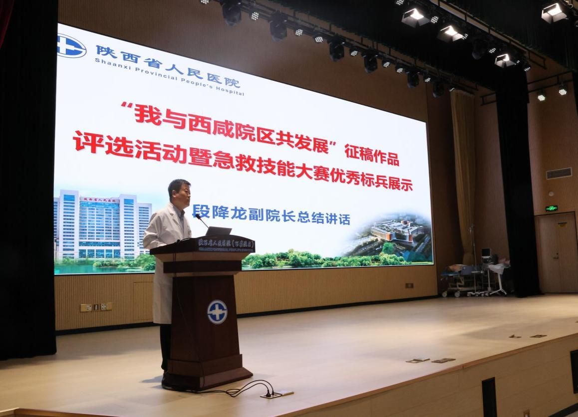 为庆祝西咸院区全面运行两周年,9月17日,西咸院区在行政楼学术报告厅举行“我与西咸院区共发展”主题征文作品评选暨急救技能大赛优秀标兵展示活动,旨在进一步提升西咸院区发展凝聚力和服务水平。副院长段降龙、西咸院区院长助理任柯出席活动。临床医技科室主任、护士长、医护代表及全体行政部门工作人员参会。