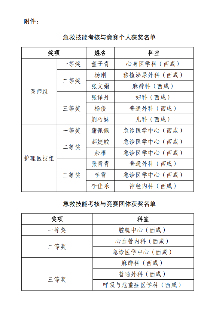 此次活动累计培训医护人员近600名,最终6个科室获得团体奖项,12名医护人员获得个人奖项,实现了“人人参与,人人过关”的预期目标,达到了“以赛代练、以比促学”的效果。本次活动显著增强了医护人员的急救应急思维和临床处置能力,对全面提升院区急救医疗服务质量和安全服务水平具有重要意义。