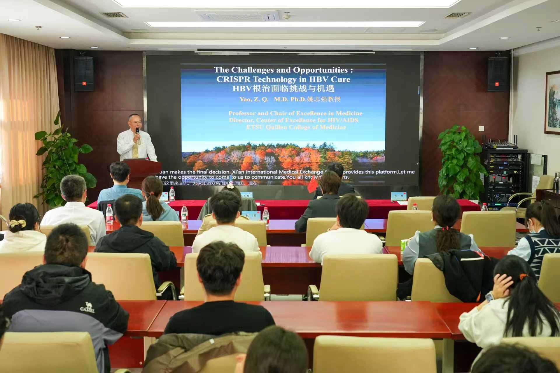 会议期间,姚志强教授在主院区和西咸院区分别作题为《The Challenges and Opportunities : CRISPR Technology in HBV Cure》《Combination Treatment with Synthetic gRNA/Cas9/Cas12 RNPs Disrupts HIV Replication》的学术报告,分享传染病治疗领域前沿新知,并与参会青年医生与研究生代表积极互动,现场交流气氛热烈。