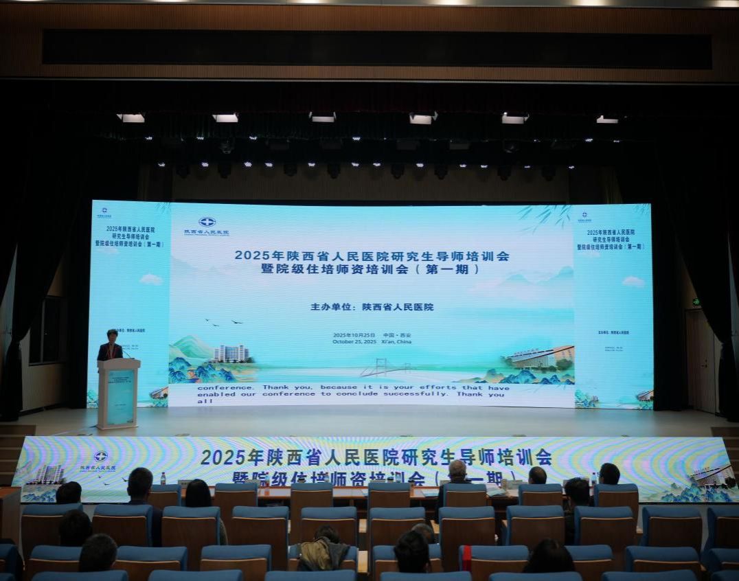 成功举办2025年研究生导师培训暨年度第一期院级住培师资培训会。陕西省医师协会副秘书长姬延梅出席会议,全院22个住培基地教学管理人员及骨干带教师资共400余人参会。