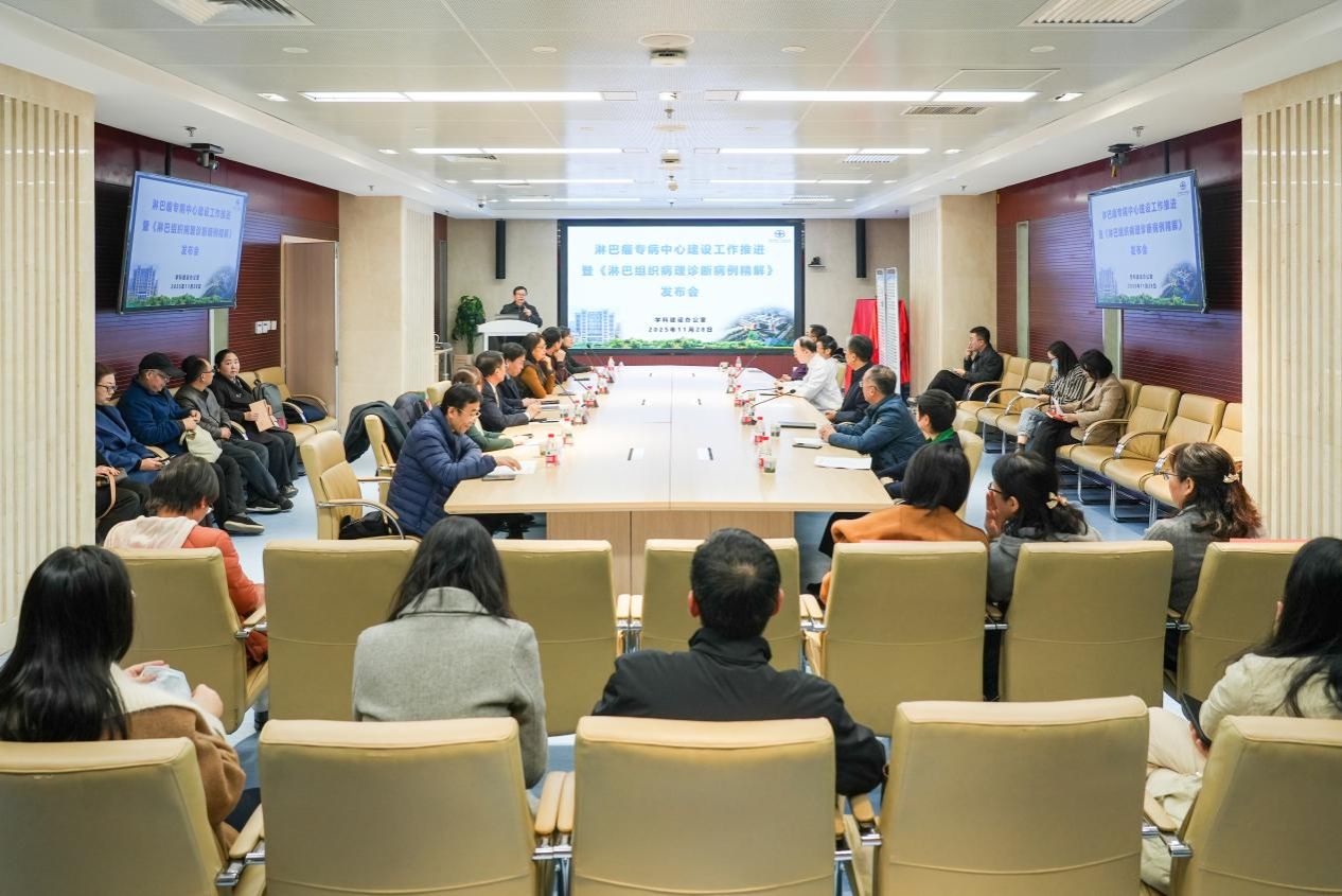 为加快推进病理学科建设工作,促进淋巴瘤专病中心高质量发展,11月28日,学科办组织召开病理学科建设推进暨《淋巴组织病理诊断病例精解》新书发布会。六合彩网站 党委张路副书记、中国医学著作网崔志军总编辑、中国医学科学院血液病医院翟琼莉教授、专著编委代表、省内、省外病理学界专家40余人出席。会议由学科办田应选主任主持。