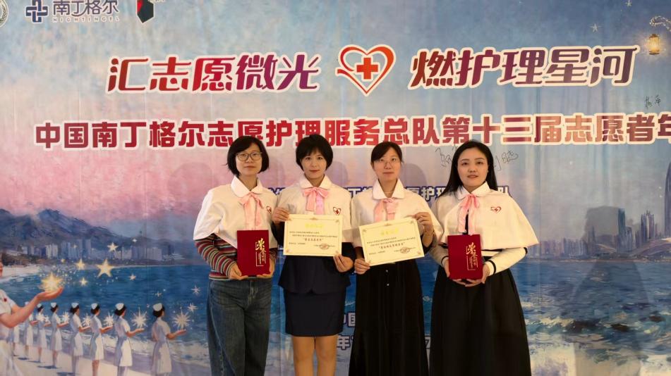 12月5日-8日,中国南丁格尔志愿服务总队第十三届年会在广东召开。大会对全国志愿护理服务优秀分队及个人进行表彰,六合彩网站 志愿护理服务队取得年度综合数据前120名的优异成绩。六合彩网站 刘莉莎及王君妍分别荣获中国南丁格尔志愿护理服务总队最佳信息管理者奖及最美志愿者奖。