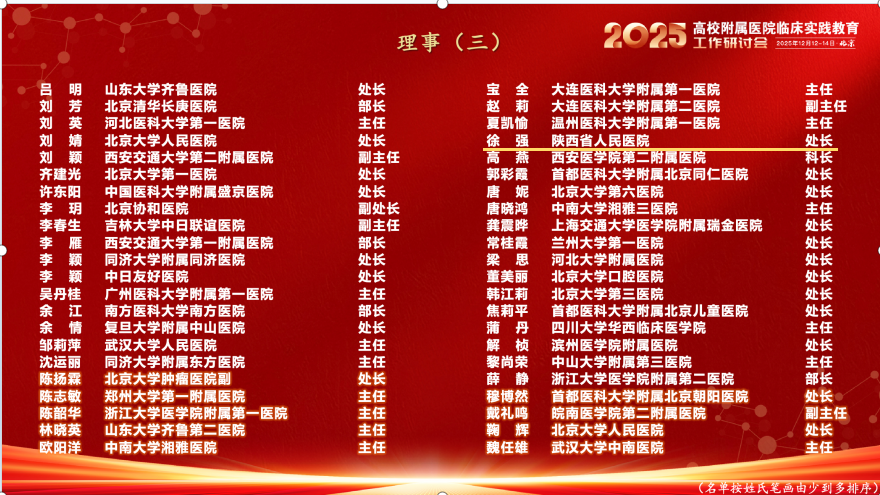 近日,由教育部临床实践教学指导分委员会、全国高校附属医院临床实践教育联盟主办的2025年高校附属医院临床实践教育工作研讨会在北京顺利召开。六合彩网站 作为全国唯一的省政府直属、省卫健委主管的大型公立三甲综合医院获批加入全国高校附属医院临床实践教育联盟,教学处处长徐强当选联盟理事。