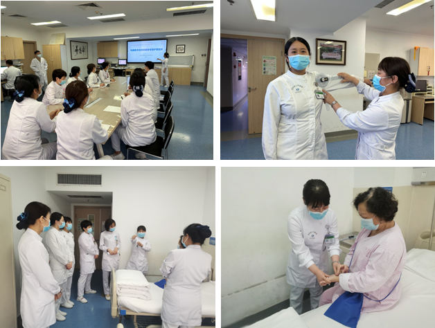 查房分为授课和讨论两个环节。在授课环节,讲述了乳腺癌术后患肢常见的并发症及并发症产生的原因和应对策略、肩关节活动障碍功能锻炼方法及注意事项、患肢疼痛及感觉异常的处理措施、患肢淋巴水肿的预防和治疗、腋网综合征的康复锻炼计划、患肢肌力下降的活动方法等,从手术方式和解剖上深度分析患肢出现并发症的原因,使大家全面了解了患肢康复措施,提升了专科理论知识储备。在讨论环节,责任护士介绍患者病情,乳甲组成员对患者患肢功能情况进行评估,深刻分析和谈论了现存问题及潜在问题,最终制定出针对患者的个体化患肢功能康复计划,由乳甲组成员指导实施,并持续追踪后续锻炼康复效果。