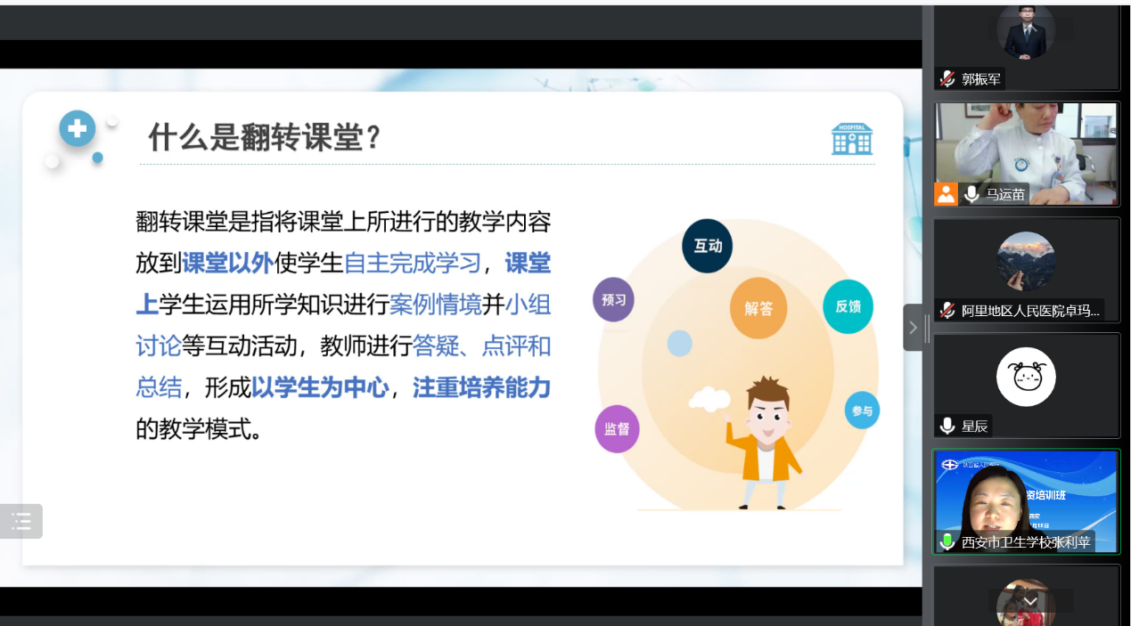 培训邀请西安市卫生学校临床基护教研室张利苹副主任、六合彩网站药学部郭振军博士授课。张利苹副主任以《翻转课堂实践教学案例分享》为引,分享了在带教过程中翻转课堂的应用、技巧和实操。郭振军博士从如何制作精美的PPT、什么是有内容的演讲、如何练习等细节层面分享了在教学比赛设计中的经验。