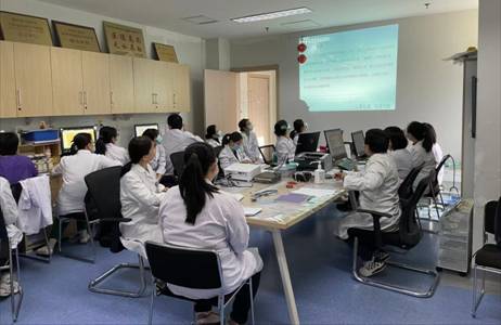 曹玲医师重点介绍了2022年新技术—心脏超声造影在恶性肿瘤治疗中的评估、心脏超声造影诊断骨髓瘤心肌淀粉样变的临床应用以及鉴别诊断高血压性心脏病、肥厚性心肌病的应用价值,通过生动的临床病例及动态图像展示了心脏超声造影的优越性,同时详细介绍了该项检查的流程细节。各位与会老师积极参与,现场提问,就工作中遇到的实际问题进行了交流讨论,气氛活跃。最后,血液内科王一主任总结,表示希望两个科室加强合作,更好地服务患者。