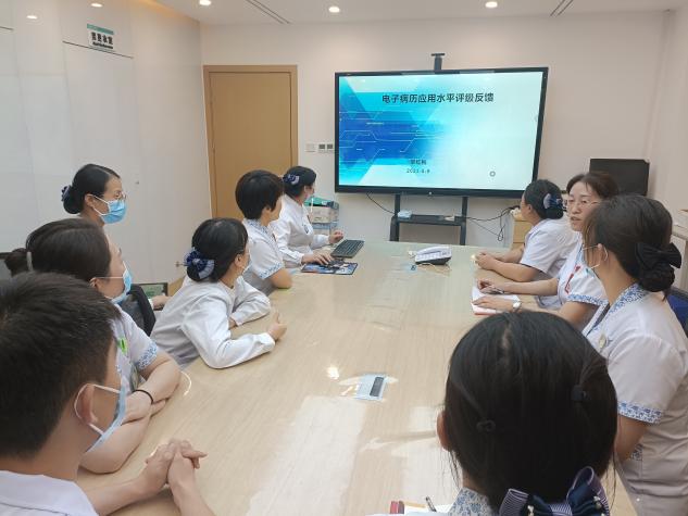 反思促成长,复盘得发展。5月9号下午,科室召开电子病历应用水平评级反馈总结会,对电子病历系统的评审内容进行全面复盘总结。大家积极探讨,踊跃发言,从日常工作的各种细节出发,查漏补缺,提出需要进一步改进的地方及整改意见汇总反馈给工程师,以期能继续完善信息系统。同时要求加强病历质控工作,强化低年资护士的电子病历应用水平培训考核,不断提升医护人员的电子病历应用水平。