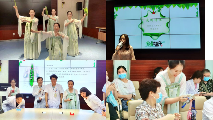 随后支部开展了以“弘扬端午文化、厚植爱国情怀”为主题的党日活动。一支开场舞《庆端阳》拉开了活动的帷幕。李忠林主任中药师带领大家重温端午节传统文化习俗,科普香囊知识。大家制作了具有芳香化湿、驱邪辟秽功效的艾草香囊。悠悠艾草,情意绵长;小小香囊,共祈安康。在互动游戏吹龙舟比赛中,两组队伍充分发挥团队协作精神,将整场活动气氛带入高潮。“龙舟五月抛新粽,岁岁端阳忆楚魂”,一曲《离骚》把我们带到了2300多年前的汨罗江畔,大家在婉转的歌声里沉浸式的缅怀伟大的爱国诗人。