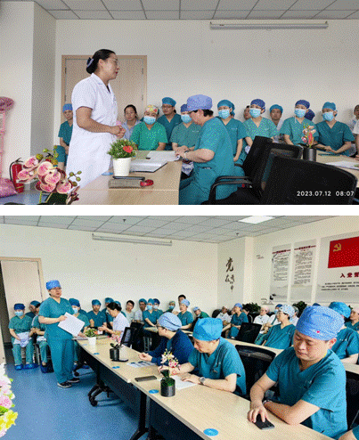 7月12日上午,全体手术室护士齐聚手术一部交班室,召开2023年中工作总结会议,科室联络员护理部刘晓梅副主任参会。