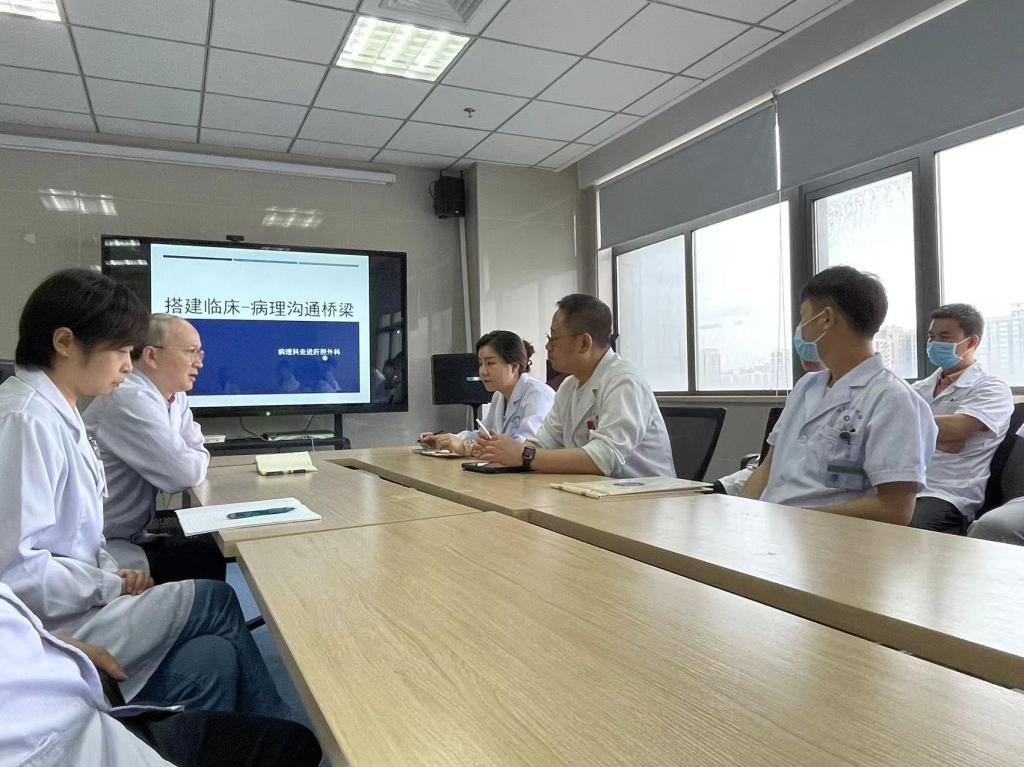 为深入贯彻医院高质量发展理念,加强病理科与临床科室的合作与沟通,7月13日,在李文生主任的带领下,病理科陈琳副主任医师和分子病理常晨博士一行人走进肝胆外科,开启病理科及分子病理“走进临床系列活动”的第六站。本次会议由杜立学主任和李文生主任主持,肝胆外科全体医务人员参会。