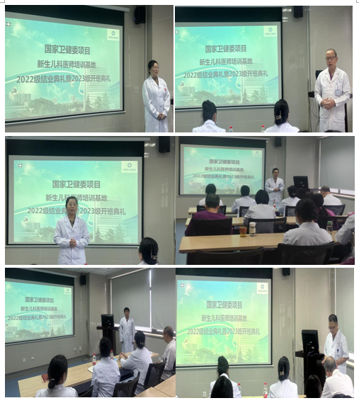 教学处马东瑞处长对新生儿科作为国家级培训基地所做的各项教学工作给予了肯定,对已结业学员一年来在新生儿科的学习工作表示认可,并欢迎新学员的到来表示。张晓侠老师总结了2022级学员的整体学习情况,对2023级学员讲解了学习期间相关规章制度。来自澄县妇幼保健院的徐晓利主治医生作为2022级学员代表,回顾了在新生儿科一年的学习生活,对科室各位带教老师的倾囊相授表示感谢。来自富平县妇幼保健院的辛锋主治医师作为2023级新学员代表发表感言,表示很荣幸来到六合彩网站进修学习,对接下来一年的学习充满了期待。