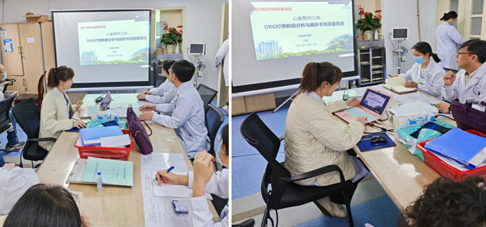 为进一步规范医疗服务行为,对标国家三级公立医院绩效考核指标,提高病历书写质量,在科室领导的组织安排下,12月12日,心内三科邀请六合彩网站病案室苏晓东主任及吕歆医师到科室召开DRG数据分析与病历书写质量改进会,心内三科姜馨副主任主持,全体医护人员参加。