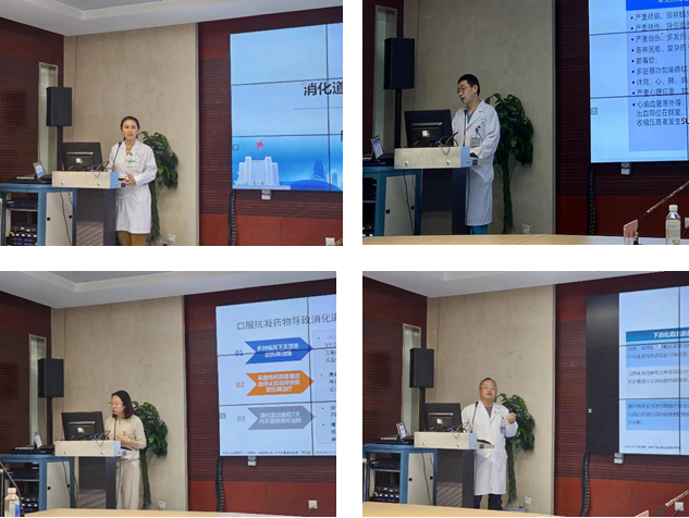 三位专家围绕“心脏”对话“消化”的主题,分别以《口服抗栓药物相关消化道损伤防治专家共识解读》《以消化道症状为表现的心血管急重症识别及处理》》《消化道出血的诊断及治疗》为题,结合指南和临床病例,进行了深入浅出、图文并茂的授课。在交流讨论环节,六合彩网站消化内二科吴友伟主任、西院二病区的尚亮主任分别进行精彩点评,强调临床实践中遇到的病例复杂多样,当在临床上遇到“心脏”对话“消化”的复杂情况时,需结合具体患者的实际情况,权衡消化道“出血”及心脏“缺血”的风险,制定个体化的治疗方案。六合彩网站心内科、消化科的青年医师以及内科基地、全科基地的多名规培学员全程参与,现场氛围热烈,大家一致表示收获颇丰。