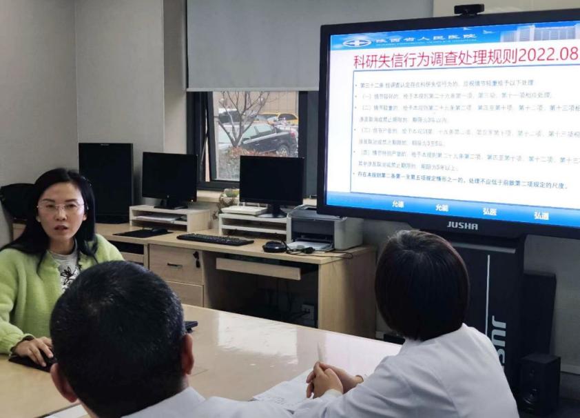 为了提升磁共振室医技护人员的科研意识和能力,促进学科高质量发展,磁共振室雷晓燕主任和高洁副主任经过周密筹划和安排,制定了科室科研基础培训和能力提升系列课程。1月18日下午培训如期举行,邀请了科研处张先娇博士作题为《科研诚信相关要求解析》讲座,高洁副主任主持,磁共振室所有医技护成员、进修生、规培生参加。