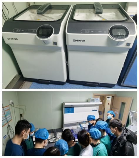 近日,两台新华“内镜自动清洗消毒机”在腔镜中心装机成功,科室邀请工程师对全科护理人员和工勤洗消人员进行了“内镜洗消机使用”专业技能培训。