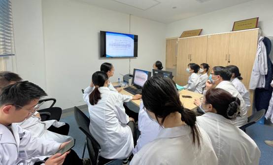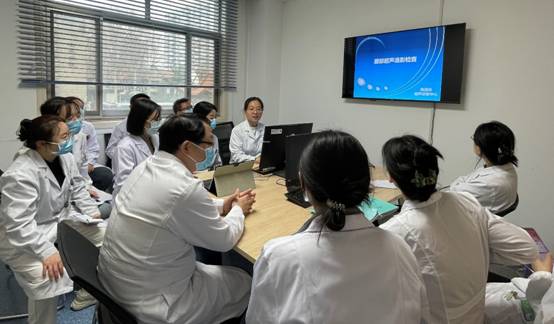 南淑良主治医师介绍了超声科人员及分组情况,涵盖全部亚专业组,并通过病例展示腹部脏器超声造影技术对疾病诊断的重要性及意义,同时介绍了超声造影剂较增强CT和MRI的优势,重点提出超声可以做到实时动态观察及床旁检查等优越性,加强了超声与临床的交流互通。各位与会老师积极参与,现场提问,就工作中遇到的实际问题进行了交流讨论,气氛活跃。