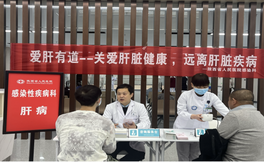 3月18日是第24个“全国爱肝日”,春季又是保肝治肝的“黄金”时节,为提高肝炎知识普及率,帮助群众提高防治意识,积极预防,早期筛查,规范治疗,感染性疾病科主任张鸿牵头,在主院区及西咸院区分别开展“全国爱肝日”义诊活动。主院区活动联合预防保健科共同举办,主题为“早防早筛,远离肝硬化—我们在路上”,感染性疾病科副主任曹宁家、预防保健科副主任护师王媛、主管护师马淑琴共同参加。西咸院区活动主题为“爱肝有道—关爱肝脏健康,远离肝脏疾病”,医务处刘鹏副处长给予肯定和支持,感染性疾病科李彧副主任主持,张晶副护士长协同组织科室医护人员积极参与。