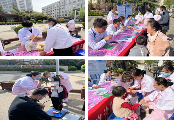 活动现场前来参加义诊的有60余人,儿童病院张晓燕、白涛敏、张毓娴三位主任及穆志龙、李宏艳、韩田田、贺望、马蕾五位主治医生,对参加义诊的儿童及家长就儿童现存在的问题,逐一进行解答,提出诊治方案。同时为家长科普了如何关注孩子的生长发育情况、如何在春天避免哮喘发作、如何关注孩子抽动症等内容,郑千千、秦建华、万晓路三位副护士长带领张玄、孙婉君、张时明、陈红等多位主管护师现场给家长科普了正确测量身高的方法、婴幼儿喂养的方法及注意事项、演示并教会家长简单的推拿手法及作用等。还为前来咨询的儿童免费测量身高体重、绘画生长曲线图、发放科普资料等。