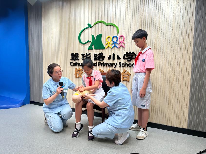 为进一步普及急救知识,提高在校学生的应急救护能力,5月23日,急诊内科党支部党员走进翠华路小学,通过现场直播和实操的方式,为全校1600名师生们培训急救知识。活动中,从应急救护的重要性入手,强调了学习海姆立克法和心肺复苏急救知识的必要性,利用急救模拟人进行一系列模拟救护,并强调注意事项,特别提醒学生们在突发意外伤害和急危重症情况下,急救知识对挽救患者生命的重要性。