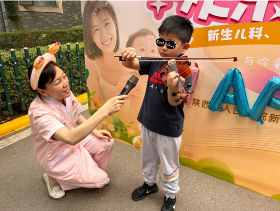 活动中,新生儿科雷宏涛主任和儿童保健科郭向阳主任向现场的小朋友们送上了节日祝福,祝他们节日快乐、幸福健康地成长。义诊分为新生儿科义诊、儿童保健科义诊及游戏区3个区域。各位专家讲解了新生儿的喂养、睡眠、疫苗接种等常见问题,帮助年轻宝爸宝妈更好适应育儿生活;并对家长普遍关心的营养摄入、智力开发等问题提供了科学、实用的指导。游戏区的设置充分考虑了安全性和趣味性,小朋友们的小提琴演奏、舞蹈战马演绎获得现场阵阵掌声,既让孩子们在欢乐中释放天性,也让家长们有机会与其他家庭交流育儿经验。现场还为参加活动的小朋友送上了一份充满关爱和祝福的节日礼物。