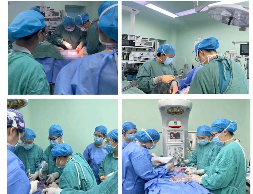 6月13日早九点,急诊送来一位胎膜早破、双胎妊娠、27+2周难免流产的孕妇,患者系试管妊娠又高龄初产,同时合并巨大子宫肌瘤,且双胎发育相对较小。虽27周属于流产范畴,但家属对此次妊娠期望值极高。经产科专业与新生儿科综合评估病情后,与家属充分沟通,给予抑制宫缩、预防感染、促胎肺成熟等对症治疗,尽可能延长孕周以期改善早产儿预后。6月16日复查,感染指标较前升高且超声提示一胎儿,羊水量极少。袁峰副主任医师及杨春荣护士长积极协调,迅速组建一支由产科、新生儿科、麻醉科及血库组成的合作团队,充分评估围术期相关风险及新生儿抢救相关事宜。一切准备就绪后,18:21一对早到的龙凤胎天使降生了(男/女体重770/760g)。胎儿娩出后,新生儿科芦红茹副主任医师及团队迅速开放呼吸通道、保障循环建立,经过一系列惊心动魄的抢救后,这对早到的天使现病情平稳。