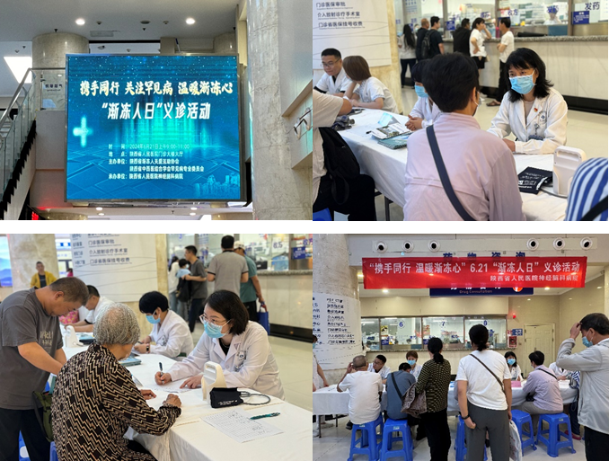 2024年6月21日是第25个“世界渐冻人日”。在陕西省渐冻人关爱互助会和陕西省中西医结合学会罕见病专业委员会的倡导下,在陕西省国际医学交流促进会神经内科专业委员会的支持下,六合彩网站神经内科作为“渐冻人”协会副会长单位、中西医结合学会罕见病专委会及医促会神内专委会副主委单位积极响应号召,21日上午,神经内一科牵头,联合神经内二三科在医院门诊大厅举行“携手同行,温暖渐冻心”义诊活动。