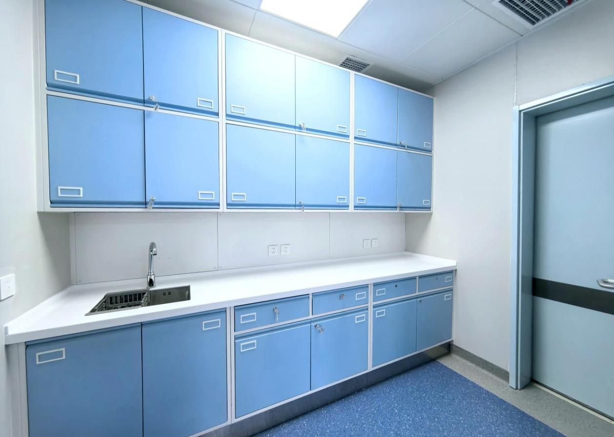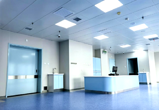 改造后的住院病房升级换新颜,总务处与设计、使用科室多次沟通,对功能分区进行了优化,将原有病房打通改造为重症监护病房,增加独立的护士站、治疗室、处置室、污物间、隔离病房及患者卫生间,尽可能达到结构紧凑,设计合理,严谨细致;隔离病房单独增设落地观察窗及玻璃电动推拉门,便于医护人员实时观察患者病情,为患者打造速度高、全面的生命航道。
