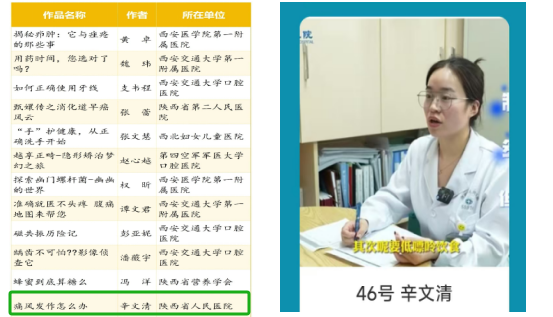 大赛自启动以来,全省各地市健康教育机构及委直委管各单位积极响应、广泛宣传、认真组织,共收到236个作品。经过评委专家的严格初审,评选出50位优秀创作者的55个入围作品参加训练营和总决赛。辛文清医师的作品《痛风发作怎么办》在236个参赛作品中崭露头角,成功入围大赛总决赛。