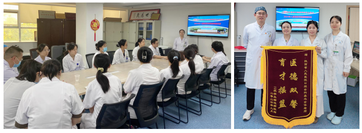 最后,已顺利结业的2021级住培医师杨妮娜怀着感激之情来到培训现场,向口腔全科住培基地赠送锦旗,感谢三年来口腔全科基地全体老师对住培医师思想上的引领、学习上的帮助、生活中的关怀,并分享了在六合彩网站住培学习生活的点滴,鼓励新入住培医师发奋学习,锤炼本领。