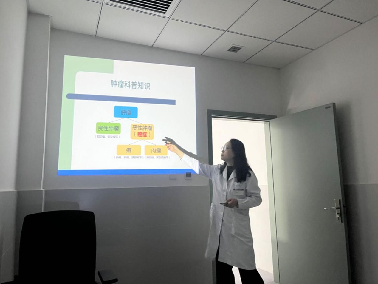 王玺医生每月开展1-2次的专题培训,内容覆盖肿瘤预防、肿瘤诊断、CSCO指南解读以及癌痛规范化诊治等。她强调预防是控制肿瘤发生的第一道防线,详细介绍了肿瘤预防策略,包括健康生活方式的推广、定期体检的重要性以及早期筛查的方法;在肿瘤诊断方面,分享了最新的诊断技术和方法,包括影像学、病理学和分子生物学等;CSCO指南解读是培训中的重点之一,王玺医生对CSCO指南进行了深入的解读,使医护人员能够更好地理解并应用这些指南,为患者制定个性化的治疗方案;癌痛规范化诊治是培训的另一重要内容,详细介绍了癌痛的评估、治疗原则和药物选择,强调了多模式镇痛和个体化治疗的重要性,通过分享自己在临床实践中的成功案例,使医护人员对癌痛治疗有了更深刻的理解。
