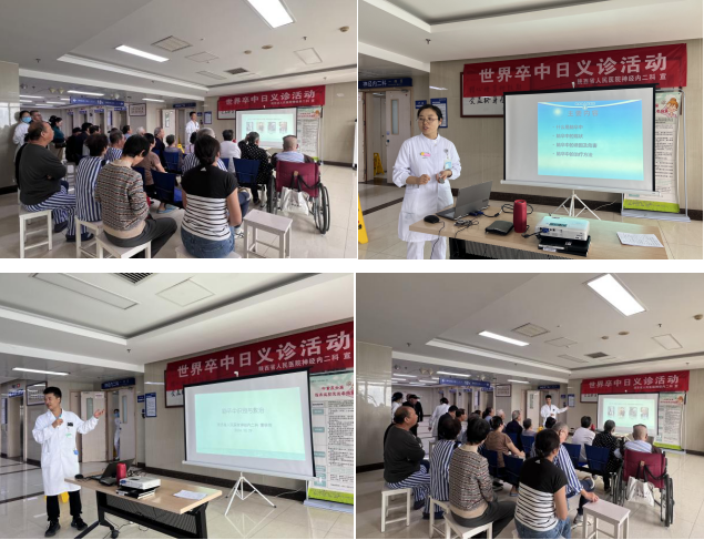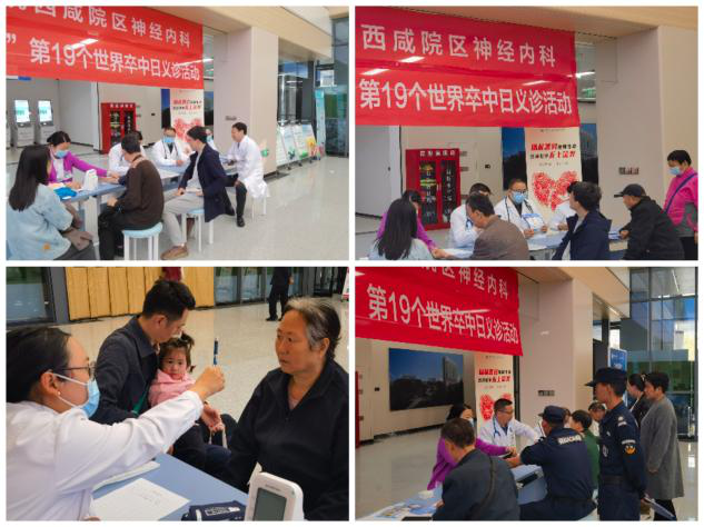 2024年10月29日是第19个“世界卒中日”,今年的主题为“体医融合,战胜卒中”,倡导通过科学运动预防卒中发生,促进患者康复,提高生活质量。为增强公众对脑卒中的认知与防控意识,10月29日“世界卒中日”当天,神经内科(西咸)、康复医学科以及神经内一二三科举办公益义诊及讲座活动。