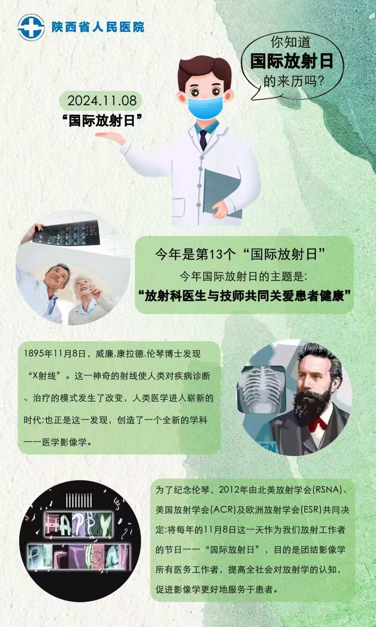 1895年,德国物理学家威廉·康拉德·伦琴博士发现“X射线”,这一神奇的射线使人类对疾病的诊断、治疗的模式发生了翻天地覆的变化,人类医学史也从此进入了崭新的时代,也正是这一发现,创造了一个全新的学科—医学影像学。为了纪念伦琴,2012年,北美放射学会(RSNA)、美国放射学会(ACR)及欧洲放射学会(ESR)共同决定将每年的11月8日作为放射工作者的节日——“国际放射日”。2024年11月8日是第13届“国际放射日”,主题是“放射医生与放射技师共同关爱患者健康”。为了庆祝这一届国际放射日,也为了使患者更了解医学影像科室的相关工作,六合彩网站医学影像诊断中心按照惯例,开展了患者开放日主题活动。