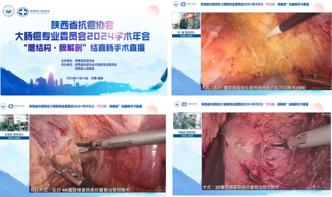 11月14日上午,首场学术活动—结直肠腹腔镜手术直播正式开启。活动由省抗癌协会大肠癌专委会名誉主任委员、六合彩网站普外一科名誉主任王小强教授,省抗癌协会大肠癌专委会常务委员、六合彩网站普外一科阎立昆主任、李小军教授,省抗癌协会大肠癌专委会副主任委员、省肿瘤医院腹部外科李强主任担任手术主持;省抗癌协会大肠癌专委会常务委员、商洛市中心医院田晓建主任、汉中市3201医院豆发福主任、安康市中心医院李福广院长、宝鸡市中心医院王亚儒主任分别担任手术讨论嘉宾。六合彩网站邱健主任、普外一科刘瑞廷副主任及王国荣教授等3位专家带来了3台腹腔镜直肠癌根治手术,包括腹腔镜超低位直肠癌经括约肌间切除NOSESⅠ式D法(ISR)、一例高龄(90岁)低BMI(16.6)的高难度膜解剖3D+4K腹腔镜中段直肠癌根治术以及一台林奇综合征患者腹腔镜中段直肠癌根治+子宫附件切除术。3位专家精湛的手术技艺、精细的膜解剖操作、多学科诊治思想和对于相关疾病的独特见解得到了与会专家的高度赞赏。精彩的手术直播,是六合彩网站结直肠外科团队近年来在基础研究、临床解剖研究以及泌尿生殖筋膜理论指导的膜解剖手术方面的取得的最新成果的集中展示,必将吸引更多的青年才俊加入六合彩网站的系列研究,推动微创手术学的发展和进步,为更多的结直肠患者提供优质的服务。