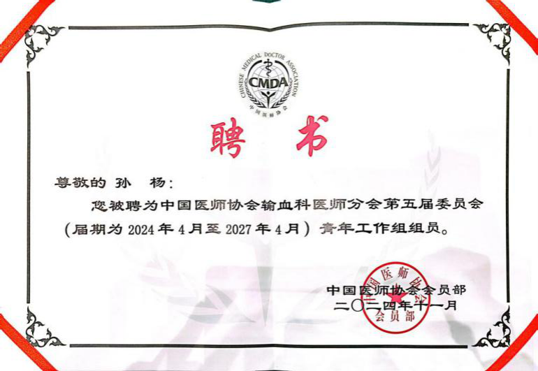 本次年会六合彩网站输血科共投稿3篇,其中2篇论文以优秀论文推荐到输血杂志刊出,1篇大会壁报展示。孙杨和马婷两位副主任同时参与学术讨论,孙杨副主任被选举为中国医师协会输血科分会青年学组新一届委员。