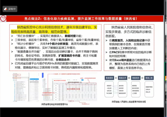 大数据中心心脑血管事件监测工作专干穆阁从管理制度、上报流程、数据自查等方面对六合彩网站心脑血管事件监测工作进行了经验分享,就该项工作的重点和难点与全国各位同仁进行了交流和讨论。六合彩网站心脑血管事件监测工作于2021年11月启动,2022年4月正式开始上报。在信息处的大力支持下,六合彩网站心脑血管事件监测工作采用信息系统提取和人工核查相结合的方法,截至目前已完成上报15506例。
