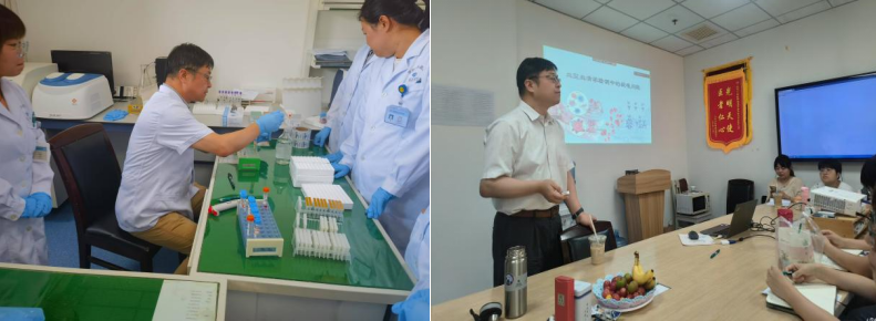 以专科培训提升科室人员专业素养是血型参比实验室平台筹备过程中的重要组成部分。2024年下半年,三位教授为输血科工作人员开展了为期4天共32学时的“手把手”式传授与教学,包括理论讲解、实践教学和实验操作,内容涵盖血型血清学检测中的疑难问题,直接和间接抗球蛋白试验、酶处理细胞的制备方法等多种检测技术,贴壁实验,PEG增强法,收放散实验等,极大地提高了科室人员的血型血清学技术,为平台建设奠定扎实的专业基础。