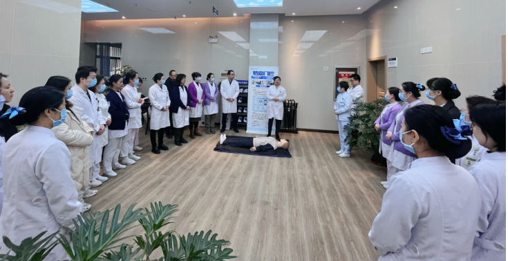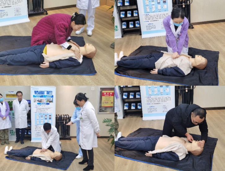 培训会上,急诊内科刘丹平主任就患者突发情况判断、心肺复苏步骤、现场急救要点进行详细讲解及示范,赵雪云副护士长进行心肺复苏急救技能演示。刘丹平主任指导参会人员进行现场实操练习,进一步掌握急救动作要领。