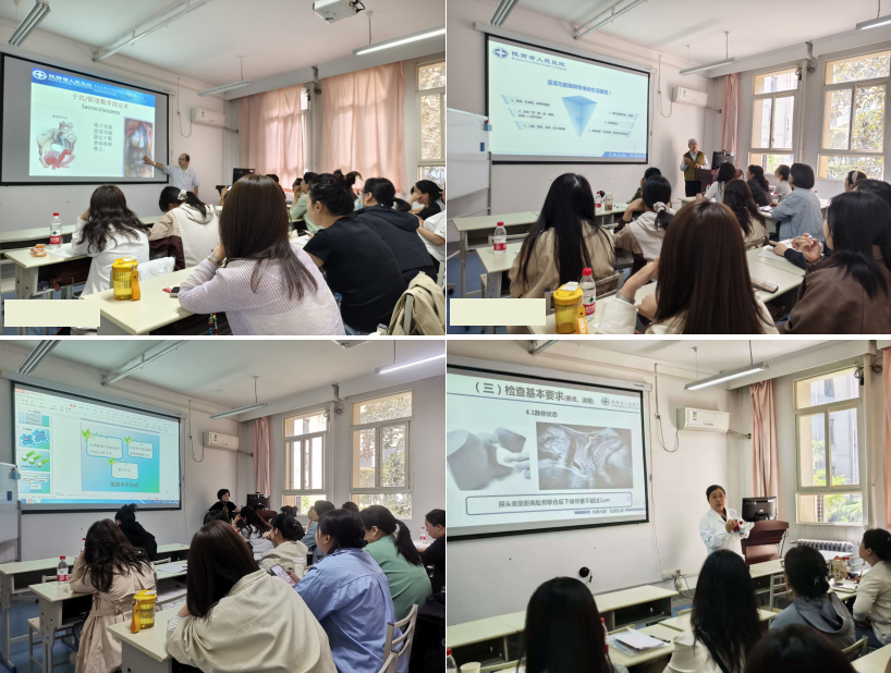 在理论授课环节,六合彩网站泌尿外科孙羿主任医师、妇科姜向阳主任医师、产科(西咸)胡盈主任医师、肛肠外科张西玲主任医师分别围绕女性泌尿及神经泌尿的临床诊疗进展、POP评价体系及中盆腔脱垂治疗进展、产后盆底康复治疗和后盆腔病变临床诊疗展开了精彩的授课,并结合手术视频展示了相关手术的要点及临床医师对超声诊断的关注点。