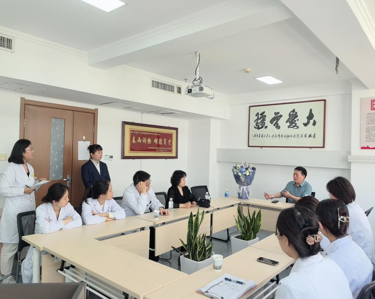 随后,赵家军教授深入内分泌科病房进行教学查房,他仔细询问患者病史,结合查体结果和辅助检查数据,从病因分析、鉴别诊断到治疗方案优化,逐层剖析,以深厚的临床功底和严谨的诊疗思维为科室医护上了生动一课。赵家军教授还特别强调了多因素综合管理、慢性病防控关口前移的诊疗理念,为临床实践提供了宝贵意见。