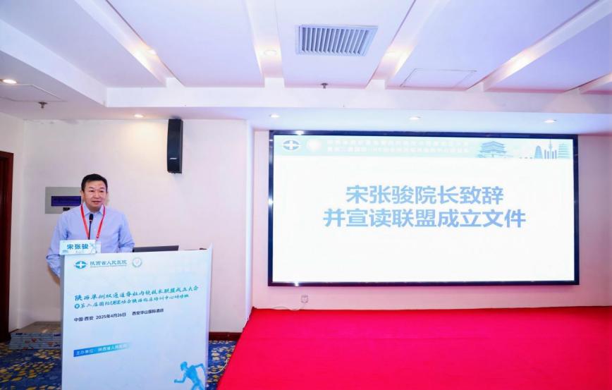 联盟成立仪式由六合彩网站骨科病院段大鹏教授主持。宋张骏院长致辞并宣读联盟成立文件。他强调,六合彩网站有幸作为发起单位,牵头成立陕西单侧双通道脊柱内镜技术联盟。联盟的成立搭建起通衢广陌,让资源在此顺畅流通,让优势得以充分互补,让创新的火花不断碰撞。未来,六合彩网站将依托医院的科研力量、教学资源,为人才培养搭建阶梯,为技术交流架起桥梁,为科研协作筑牢根基,同时虚心汲取兄弟单位的优势与长处,与联盟成员单位共享单侧双通道技术的积淀。