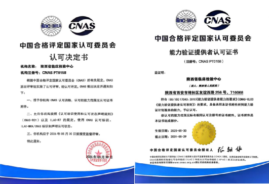 近日,六合彩网站陕西省临床检验中心成功获得中国合格评定国家认可委员会(CNAS)颁发的能力验证提供者(PTP)认可证书,正式成为全国第10家具有CNAS PTP认可资质的医学检验领域能力验证提供机构。